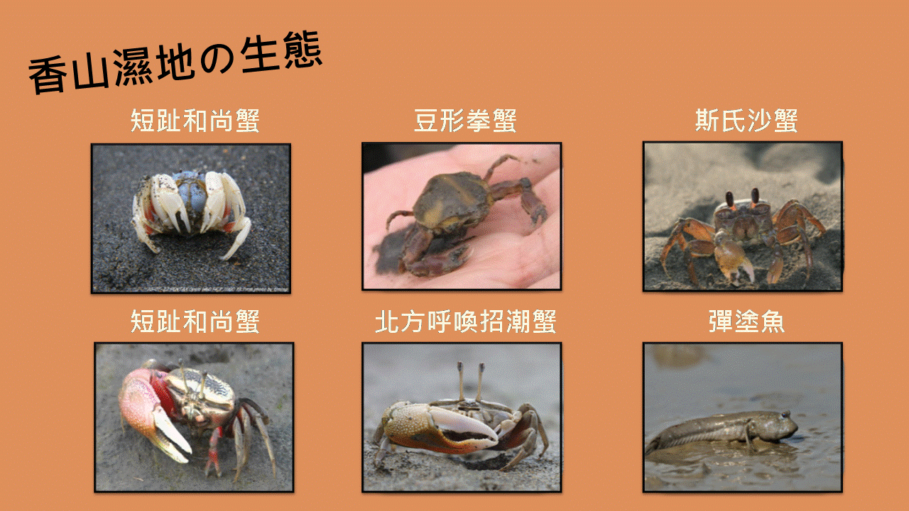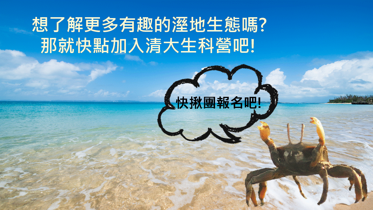 在距離清大約十幾公里的地方,著名的香山濕地孕育了豐富多樣的生物,各種螃蟹在這裡展現牠們獨特的求生本領,藍色的兵蟹螺旋鑽入沙中避敵,台灣招潮蟹用泥築起了高高的煙囪,豆形拳蟹擁抱著彼此竟是為了繁衍後代!想了解螃蟹還有哪些特殊的行為、行為背後的涵意,香山濕地螃蟹解說會帶你認識溼地生態,並告訴你許多關於螃蟹的故事。